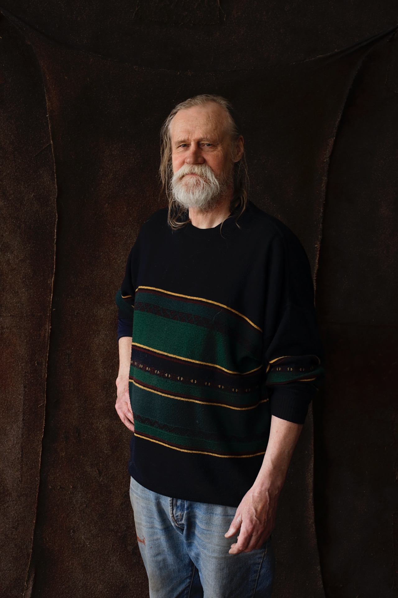 After decades of working with bronze, Pitkänen turned to leather. The material was familiar to him from his childhood when he would accompany his father to the leather factory. "I waded in the piles of leather as a toddler. I can still remember how it smelled", the artist says. "But I also pulled some pranks; the men at the factory were working stitching the leather on the big machines and I would watch the long threads that went in the sewing machines and discreetly tie them in knots. Then I waited until someone started cussing, thinking what is wrong with the machines again today. It took a long time for them to realise it was me doing that and I had a lot of fun."